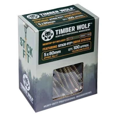 Timber Wolf TW50080 Woodscrews 5.0 x 80mm Box of 100, Zinc & Yellow (Gold)