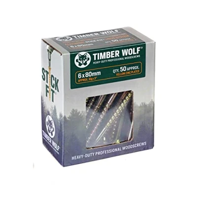 TIMBER WOLF TW60080 Woodscrews 6.0 x 80mm Box of 50, Zinc & Yellow (Gold)