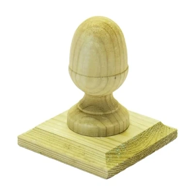 Timber Wooden Fence Post Cap with Acorn Finial Design 120x120mm Fits 4x4" (100x100mm) Square Posts, Tanalised Pressure Treated EU Wood, Overhang for Improved Protection (Green Stain)