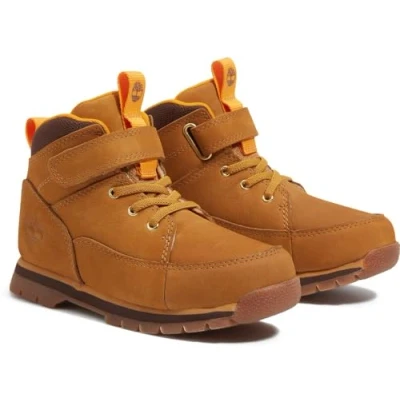 Upper made with Premium Timberland Leather Bungee lacing plus a top strap with hook-and-loop closure Lace closure on Junior sizes "Does it Fit?" sockliner Rubber outsole