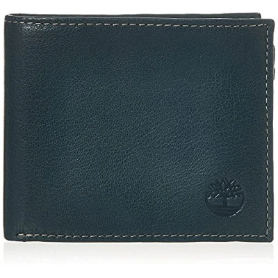 Timberland Men's Leather Wallet with Attached Flip Pocket Travel Accessory Bi Fold, Navy (Blix), One Size