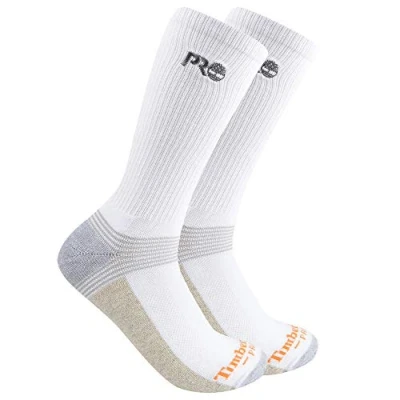 Timberland PRO Men's 2 Pack Ribbed Logo Crew Socks, White, Large