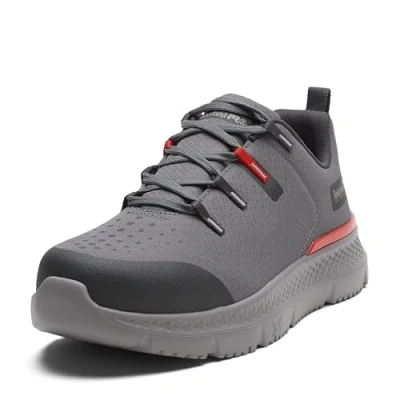 Timberland PRO Mens Intercept Steel Safety Toe, Grey/Red, Wide