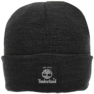 Timberland Unisex's Short Watch Cap with Woven Label Cold Weather Hat, Charcoal Heather Gray, One Size