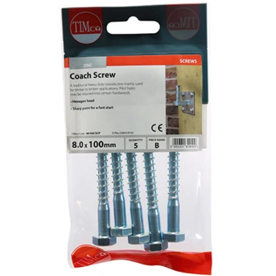 TIMco 08100CSCP BZP Coach Screw 8 x 100 Zinc (Pack of 5)