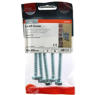 TIMco 0860CSCP BZP Coach Screw 8 x 60 Zinc (Pack of 5)