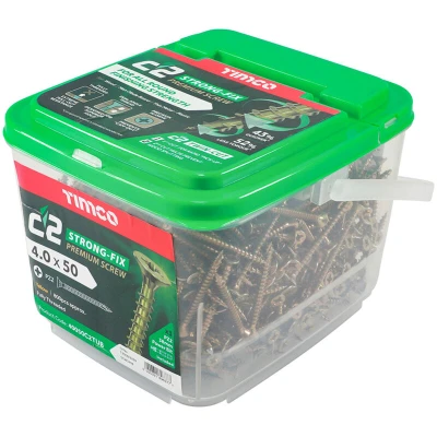 General description The TIMco 4.0 x 50mm Classic C2 Wood Screw is a premium multi-purpose screw designed for high performance and versatility. Engineered with modern manufacturing methods, it features patented twin cut technology that enhances pick-up speed and minimizes splitting, making it ideal for various applications requiring secure fixing. Technical specifications Size: 4.0 x 50mm Colour/Plating: Zinc & Yellow Passivated Thread Design: Dual angle full thread Usage These screws are perfect for applications where optimum holding force is essential, such as securing hinges and brackets.