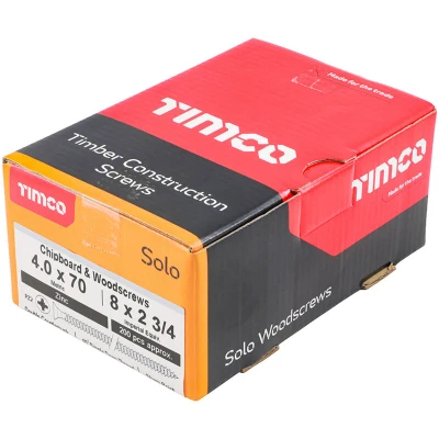 Timco 40070SOLOZ PZ2 CSK BZP Solo Woodscrew 4.0 x 70 Zinc Plated (Box of 200)