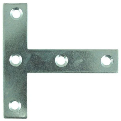 General description A T joint for strengthening and repairing, ideal for various internal applications. Technical specifications Dimensions: 76 x 76 x 16 mm Material: Zinc plated steel Pack size: 25 pieces Installation Features countersunk holes for a flush finish.