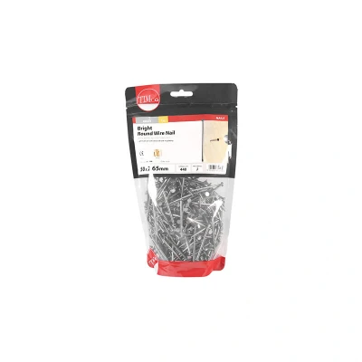 General description Timco Round Wire Nails are designed for general use, featuring a full round head that provides excellent clamping capability. These bright nails are self-colored and do not have any plating, ensuring a clean and natural finish. Technical specifications Size: 50 x 2.65 mm Type: Round wire nails Head type: Full round head Finish: Bright (self-colored, no plating)