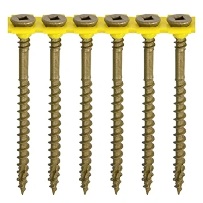 The collated strips are specifically designed to be compatible with all leading power tool brands Corrosion resistant plating to withstand up to 1,000 hours in a salt spray cabinet. New and innovative design enables the screw to rapidly penetrate the timber, cleanly countersink and securely clamp the decking board to the joists 50 Screws per strip, Weight: 0.110231131 Pounds, Manufacturer: TIMCO