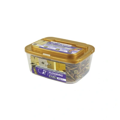 ManoManoGeneral description The TIMCO C2 Flooring-Fix Premium Flooring & MDF Gold Woodscrews are specifically designed for use in man-made boards such as MDF and Chipboard. These screws feature a C2 twin-cut tip that allows for rapid pickup and minimizes the risk of splitting. The steep head design includes finishing teeth and self-countersinking ribs, ensuring a flush finish. Technical specifications Dimensions: 4.2 x 55 mm