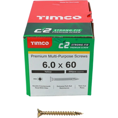 TIMCO C2 Strong Fix Multi Purpose Premium Countersunk Gold Woodscrews 6.0 x 60 Box of 200