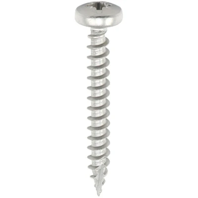 General description All the features and superior performance of the Classic Multi-Purpose Screw manufactured from A2 Stainless Steel. Ideal for applications requiring ultimate corrosion resistance when fixing to softwoods, hardwood (pre-drilled), chipboard, MDF, and plastic. Stainless steel is essential in corrosive environments or when the base material has inherent corrosive characteristics, such as Green Oak. Technical specifications Size (mm): 4.0 x 30 Size (imp.): 8 x 1.1/4 Driver Bit Size: PZ2 Pack Type: Box Pack Quantity: 200 Recess Type: Pozi Head Type: Pan Thread Type: Single Coarse Point Type: 25° Sharp Material: Austenitic Stainless Steel (A2-304) Corrosion Rating (1-5): 4 - Suitable for urban & industrial areas with a moderate salt atmosphere Substrates: Hardwood, Softwood, Chipboard, MDF, Plastic, Thin Sheet Metal, Corrosive Wood (e.g. Oak, Cedar) Salt Spray Resistance (Hrs): Tested to BS EN 9227 - 1008 Usage Ideal for fixing in environments where corrosion resistance is