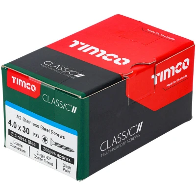 TIMCO Classic Multi Purpose Screws 4.0 x 30 A2 Stainless Steel Box of 200