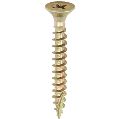 General description Specifically designed as a multi-purpose product, the TIMCO Classic Multi-Purpose Countersunk Gold Woodscrews feature a 25° sharp point and a special thread design. The lubrication and corrosion-resistant plating ensure that these screws perform efficiently in various materials including hardwood, chipboard, MDF, plastic, and thin sheet metal. Technical specifications Size: 4.0 x 30 mm Point type: 25° sharp point Thread design: Special thread for enhanced performance Coating: Corrosion-resistant plating