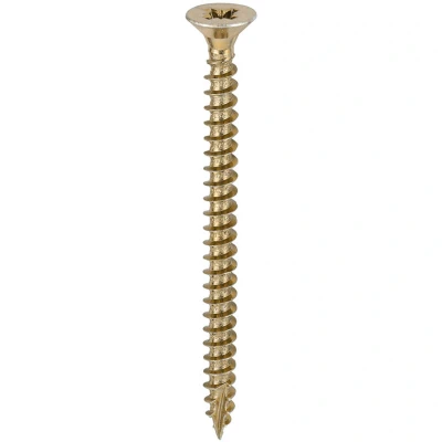 General description Specifically designed as a multi-purpose product, the TIMCO Classic Multi-Purpose Countersunk Gold Woodscrews are ideal for use in hardwood, chipboard, MDF, plastic, and thin sheet metal. The screws feature a 25° sharp point and a special thread design that ensures consistent and efficient performance. Technical specifications Size: 4.5 x 60 mm Thread design: Special thread for enhanced grip Point type: 25° sharp point Coating: Corrosion resistant plating
