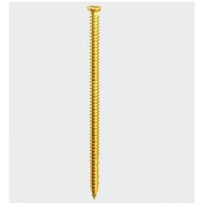 General description A rapid and effective light duty anchoring system for fixing into concrete, brick, stone, concrete block, and wood. This through fixing provides a single solution and replaces traditional fixings such as nylon frame and hammer fixings. Technical specifications Dimensions: 7.5 x 100 mm Material: Gold-coated steel