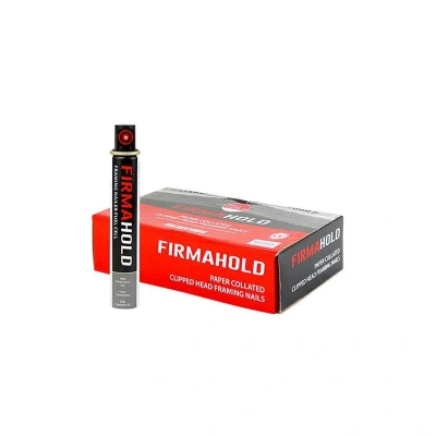 General description For use in structural applications, the TIMco FirmaHold 2.8 x 50mm Collated Clipped Head Ring Shank Firmagalv Nails are designed with high-quality paper collation to reduce nail jams. These nails provide rust protection to comply with building regulations and meet service classes, making them suitable for indoor applications. Technical specifications Point Type - Diamond Service Class - 1 Collation Angle - 34° Pack Qty - 1100 Substrates - Timber Nails Per Strip - 44 Corrosion Rating (1-5) - 1 (Clean, dry & low humidity environments) Packs per Carton - 4 Shank Type - Ring CE Standard - BS EN 14592:2008 Pack Type - Box Fuel Cell Quantity - 1 Shank Ø (mm) - 2.8 Finish - FirmaGalv Head Type - Clipped L (mm) - 50 Material - Carbon Steel Head Area (mm) - 33.8 Point Length (mm) - 4.06 Other information Standard Equipment: 1x TIMco FirmaHold 2.8 x 50mm Collated Clipped Head Ring Shank Firmagalv Nails & Fuel Cell Qty 1100