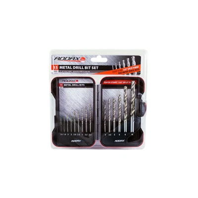 General description A 15 piece mixed selection of the most popular HSS Ground Metal Drills featuring a 135° degree quick start split point, ideal for efficient drilling in metal. Technical specifications Type: HSS Ground Metal Drills Quantity: 15 pieces Point angle: 135° quick start split point Other information Sold in a robust weatherproof case.