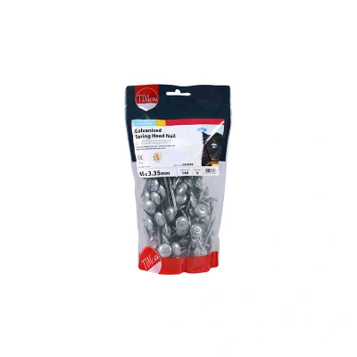 General description Timco Spring Head Nails are designed for fixing corrugated sheeting, providing a reliable solution for various roofing applications. The twisted shank enhances pull-out resistance, ensuring a secure hold.