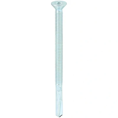 General description The Timco Wing Tip heavy section screw is specifically designed for attaching wood to heavy section steel, with a maximum thickness of 12mm. It features a fine self-tapping thread with wings that ream out the timber, allowing the screw to achieve maximum RPM without burning out. When the wings contact the metal, they break off to enable the thread to self-tap into the metal. Technical specifications Size: 5.5 x 85mm Box Quantity: 100 Colour/Plating: Zinc Head Type: Phillips Countersunk Bit Size: PH3 Other information Bright zinc electrolytic plating with a clear toxin-free finish.