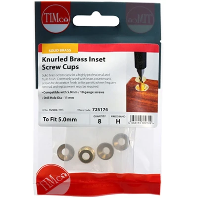 TIMCO Knurled Brass Inset Screw Cup To fit 4.8, 5.0