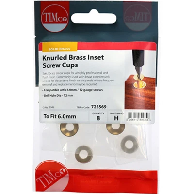 TIMCO Knurled Brass Inset Screw Cup To fit 5.5, 6.0