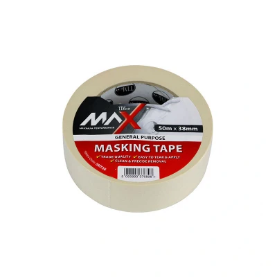 General description Trade quality, general purpose masking tape manufactured from saturated semi-crepe paper with pressure sensitive natural rubber adhesive. Made in Europe. Technical specifications Length: 50m Width: 38mm