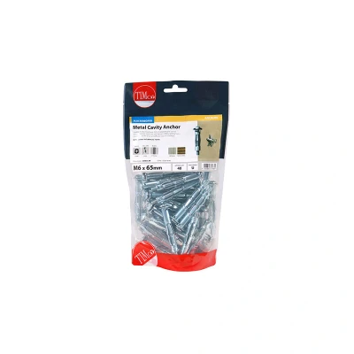 General description A cavity fixing that is ideal for hanging radiators, brackets, handrails, and shelving units. Technical specifications Size: M6 x 65 Screw length: 70mm Installation When installing multiple anchors, a TIMco Setting Tool is recommended for a fast and efficient way of installation.