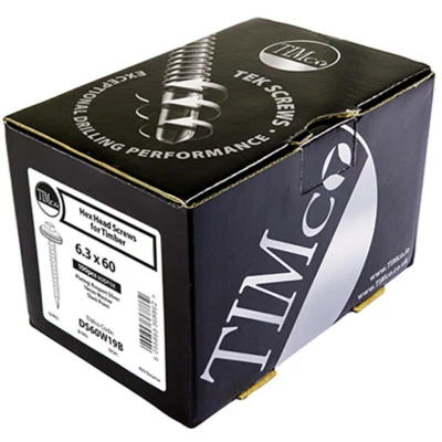 Timco Metal Construction Thin Sheet to Timber Screws Hex EPDM Washer Slash Point Exterior Silver Organic (Size 6.3 x 125 100 Pieces)