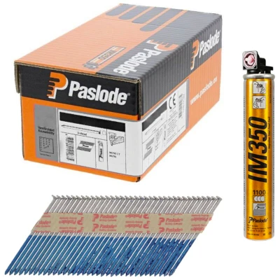 General description Paslode 3.1 x 75mm 350+ Smooth Nails feature a hot dipped galvanised finish, designed for durability and performance. These nails come in a box of 1,100 and are equipped with a clipped head and diamond point for easy driving. They are suitable for various applications, including indoor, covered outdoor, and outdoor use. Technical specifications Finish: Hot Dipped Galvanised Size: 3.1 x 75mm Shank: Smooth Pack: Box of 1,100 nails Zinc coating minimum: 50µm Compatibility and accessories Compatible with Paslode IM350+ Gas Framing Nailer Other information Meets Eurocode 5 requirements for service class 1, 2, and 3 Patented paper strip collation eliminates paper residue under nail heads All Paslode nails are CE Marked