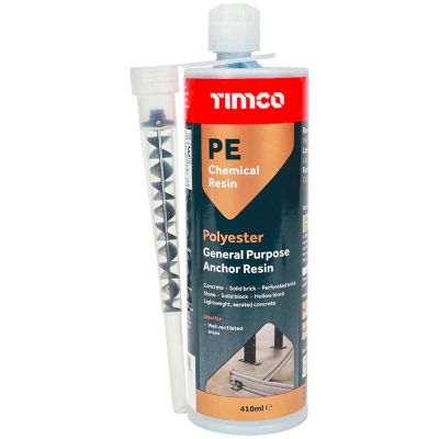 General description Polyester Chemical Anchor Resins are a two-component system that mixes in the nozzle, designed for various applications in solid and hollow masonry. This product has European approval, ensuring its reliability and effectiveness. Technical specifications Volume: 410 ml Type: Two-component polyester resin Usage Easy application by pumping the required quantity of resin into the hole.