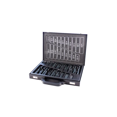General description An economic HSS drill set designed for drilling all non-alloy materials. The set includes 170 pieces, providing a comprehensive range of sizes for various applications. Technical specifications Material: HSS (High-Speed Steel) Point angle: 135° split point Usage The 135° split point design prevents the bit from drifting, allowing for faster penetration into materials.