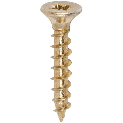 TIMCO Solo Chipboard & Woodscrews Gold 3.0 x 17 Box of 200 A single thread woodscrew mainly used in various types timber and man made boards or into masonry with the use plastic plug