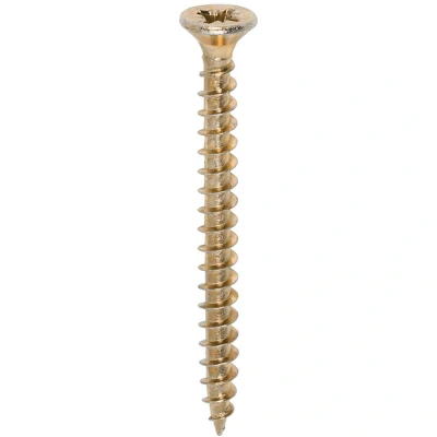 General description TIMco Solo woodscrews are designed for versatile use in various types of timber, man-made boards, and masonry (when used with a plastic plug). Their special thread configuration ensures ultimate performance and high pull-out resistance, making them ideal for a range of applications. Technical specifications Size: 4.5 x 50mm Thread Design: Single thread Fully threaded up to 70mm Point Type: 25° Sharp Point for easy penetration Available Plating Types: Zinc & Yellow or Zinc & Clear Cross recess double countersink available in both plating types