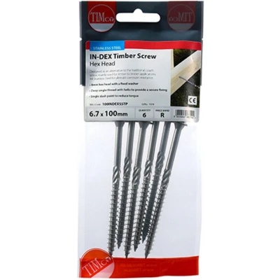 TIMCO timber Screws Hex Flange Head A4 Stainless Steel 6.7 x 100 Great for decking, to applications, alternative traditional coach screws, 1000 hours salt spray tested