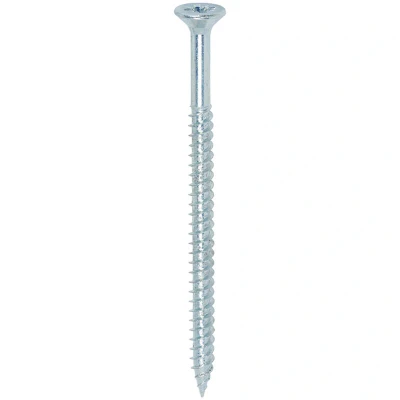 General description The TIMco Twin Thread Zinc Countersunk Woodscrew is designed for general use in softwood and various types of hardwood. These screws feature a double countersunk design and are plated in zinc, ensuring durability and resistance to corrosion. The twin thread design allows for faster insertion and greater pull-out resistance, making them ideal for a variety of applications. Technical specifications Size: 12 x 3 1/2 inches Material: C10-18 Steel Surface hardness: up to 750 HV Core hardness: up to 450 HV Plating: Zinc 3-5 microns Thread type: Partially threaded from 1 1/4 inches Compatibility and accessories Suitable for TIMco and all other leading plastic expansion plugs Installation Designed with a 25° sharp point and single leading thread for easy penetration and improved thread acceptance Double countersunk design reduces the likelihood of head shear and assists in completing countersinking Usage Primarily used in soft timber applications or masonry with a plastic