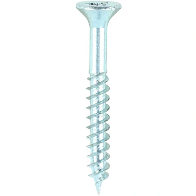 General description The TIMco Twin Thread Zinc Countersunk Woodscrew is designed for general use in softwood and various types of hardwood. This traditional twin-thread woodscrew features a single lead start for fast installation and is particularly effective in soft timber applications or masonry when used with a plastic plug. Technical specifications Size: 7 x 1 1/4 inches Material: C10-18 Steel Plating: Zinc, 3-5 microns Surface hardness: Up to 750 HV Core hardness: Up to 450 HV Thread type: Double Countersunk, Twin Thread Sharp point angle: 25° Thread acceptance angle: 24° Compatibility and accessories Suitable for TIMco and all other leading plastic expansion plugs Usage Ideal for general use in softwood and hardwood Recommended for soft timber applications or masonry with a plastic plug Other information Designed and manufactured to BS 1210 Standards Partially threaded