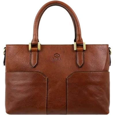 Time Resistance Cognac Brown Full Grain Leather Purse for Women Handbag Top Handle Bag Tote