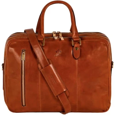 ✔️ BAG THAT MAKES A STATEMENT – did you know you have only 7 seconds to make a first impression? And every detail matters - this eye-catching leather briefcase will help you to turn heads and make you feel more confident and good-looking. ✔️ DESIGNED FOR COMFORT – the bag has 3 large compartments, fits a laptop up to 15”, is suitable for A4 documents. DIMENSIONS - Height: 11.4 in (29 cm); Length: 15.4 in (39 cm); Width: 5.5 in (14 cm). Shoulder drop length: 32.7 – 58.9 in (83 - 147 cm); Weight: 4lb 3oz (1.9kg). ✔️ CONVERTIBLE TO A BACKPACK – the briefcase has a shoulder strap, adjustable in length. You can attach the strap and convert the briefcase into backpack! As well it has a trolley strap for attaching the bag to the handle of a pull-along suitcase. ✔️ MADE TO LAST – the leather bag is handmade in Italy using craftsmanship secrets passed down through generations. Reliable hardware, tear-resistant lining, YKK zippers – dedication and ATTENTION TO DETAIL is what ensures incredible look of a quality leather accessory. ✔️ ONE OF A KIND – the briefcase is made from full-grain cowhide leather, which is hand-dyed using vegetable tanning method. This artisan technique maintains a natural look of leather, leaving each piece with a slightly different pattern. So there will be only one bag like yours in the world. ✔️ IDEAL FOR UNFORGETTABLE GIFTING EXPERIENCES: Our briefcase is elegantly presented in a gift box, creating magic from the very first sight. This is the perfect piece for those who appreciate timeless design, craftsmanship, and thoughtful presentation. Let them unbox an unforgettable experience and a lifelong companion.