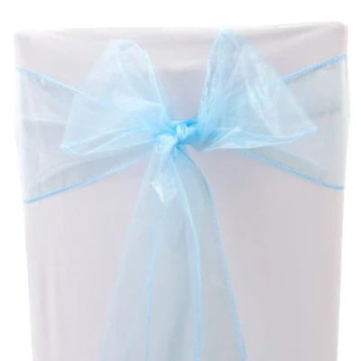 Time to Sparkle 100PCS 17x280cm Organza Chair Sashes Wider Fuller Cover Party Decoration Bow for Wedding Baby Blue