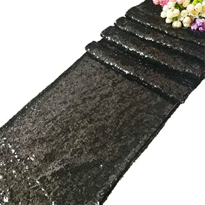 Time to Sparkle 12x108inch Glitter Sequin Table Runner Chair Sashes Swags Wedding Party Decoration Tablecloth Black