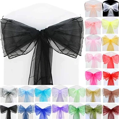 Time to Sparkle 150pcs 22x280cm Black Organza Sashes Wider Sash Fuller Bows Chair Cover for Wedding Party Birthday Decoration