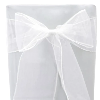 Time to Sparkle 17x280cm Organza Chair Sashes Wider Fuller Cover Party Decoration 100PCS Bow for Wedding White