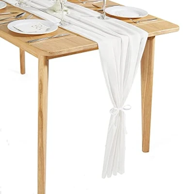 【Package】:1PCS 28"width 120"length chiffon table runners + 2Pcs White Ribbons.10Ft is a perfect length for 6ft either round or rectangle table if you want the effect of hanging to the floor. 【Style】:The high-quality fabric gives this wedding table runner a good drape and has a certain degree of wrinkle resistance. The just right transparency makes this gauze table runner look very romantic and elegant. The table runner is carefully sewn with firm seams around it,durable and reusable.It is unique and elegant for your wedding reception tables, sweetheart table, and cake table etc. 【Widely Use】:These beautiful flowy chiffon table linens are perfect for just about any event including weddings, bridal showers, baby showers, graduation decorations,holiday dinner parties, or simply for home decor. 【Care Label】:Machine washable in a laundry bag, or hand wash in cold water with mild detergent; No bleach; Lay flat or hang to dry; Do not twist. 【More Combinations】:We also have various tablecloth backdrop sequin table runner that can be perfectly matched together. Please enter our shop"Time to sparkle" to see more.
