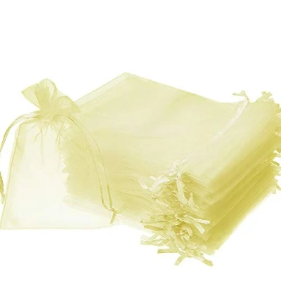 Time to Sparkle 25 Pack Organza Gift Bags Wedding Party Favour Jewellery Packing Pouches, Light Yellow, 13x18cm