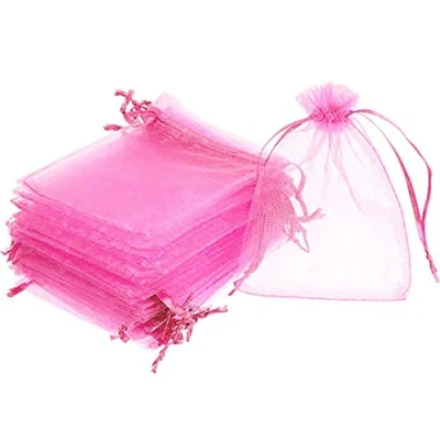 Time to Sparkle 25 Pack Organza Gift Bags Wedding Party Favour Jewellery Packing Pouches, Pink, 9x12cm