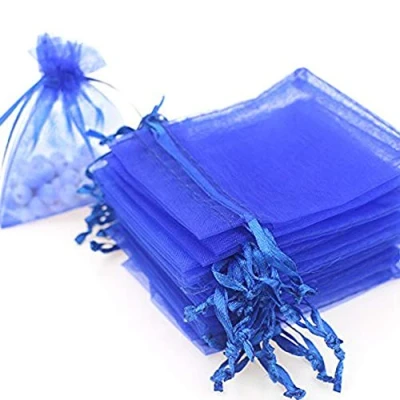 Time to Sparkle 25 Pack Organza Gift Bags Wedding Party Favour Jewellery Packing Pouches, Royal Blue, 9x12cm