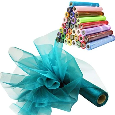 Time to Sparkle 26M x 29cm Sheer Organza Roll Sash Fabric Table Runner Sashes Chair Cover Bows Swags Wedding Party Teal Green